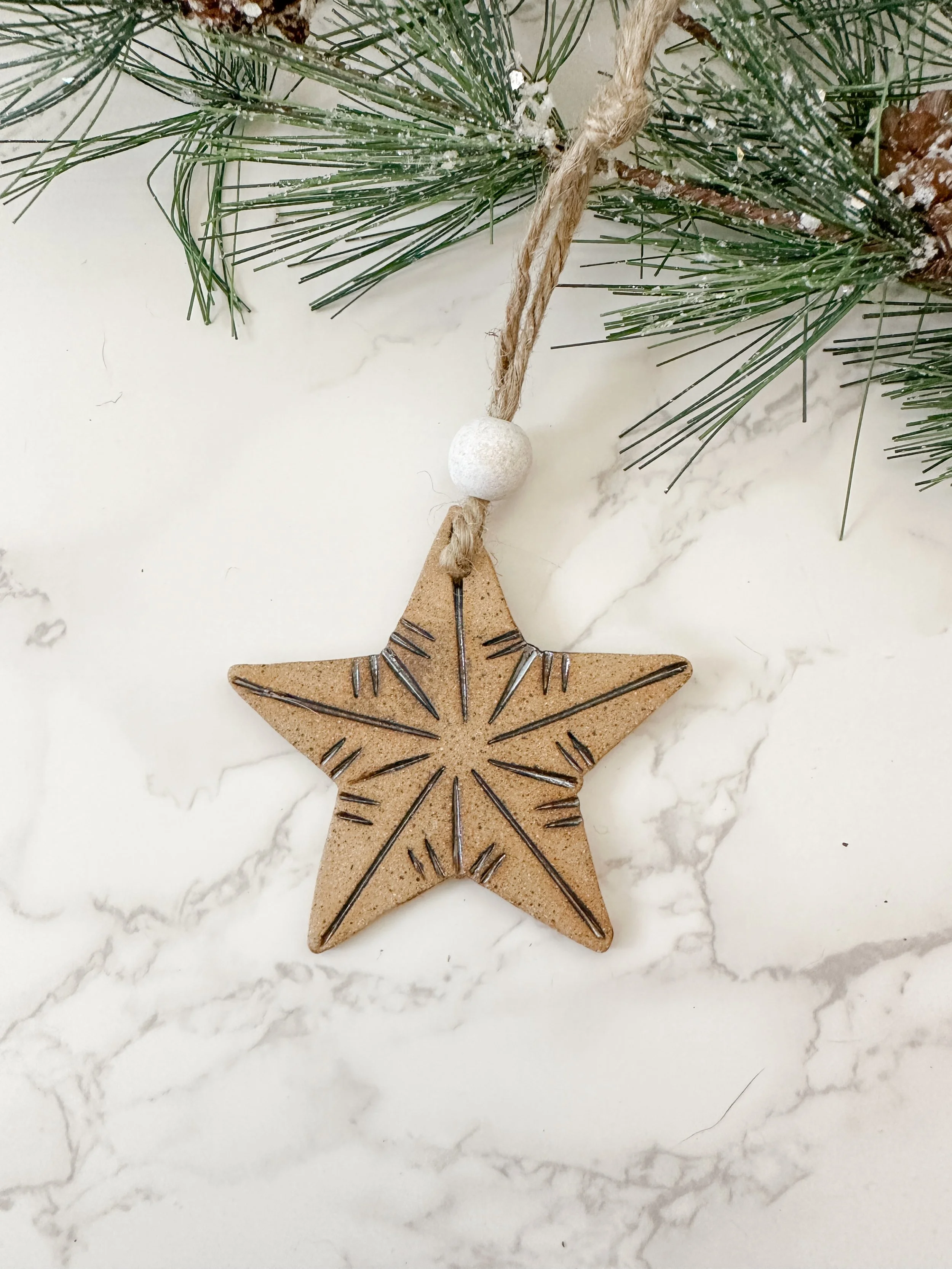 Shop › Gold Star Ornament Image 1 of 1 Gold Star Ornament $12.00 Hand painted patterned ornament with brown clay. The ornament has beaded twine hanger. Quantity: Add To Cart Added! Hand painted patterned ornament with brown clay. The ornament has beaded twine hanger. Reviews Reviewer Name Review Date Star Rating Description Posted on Etsy Product Show More
